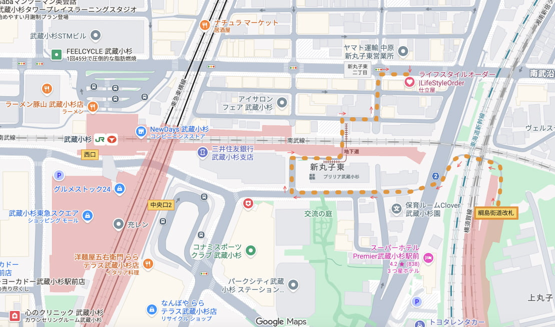 武蔵小杉駅から店舗まで