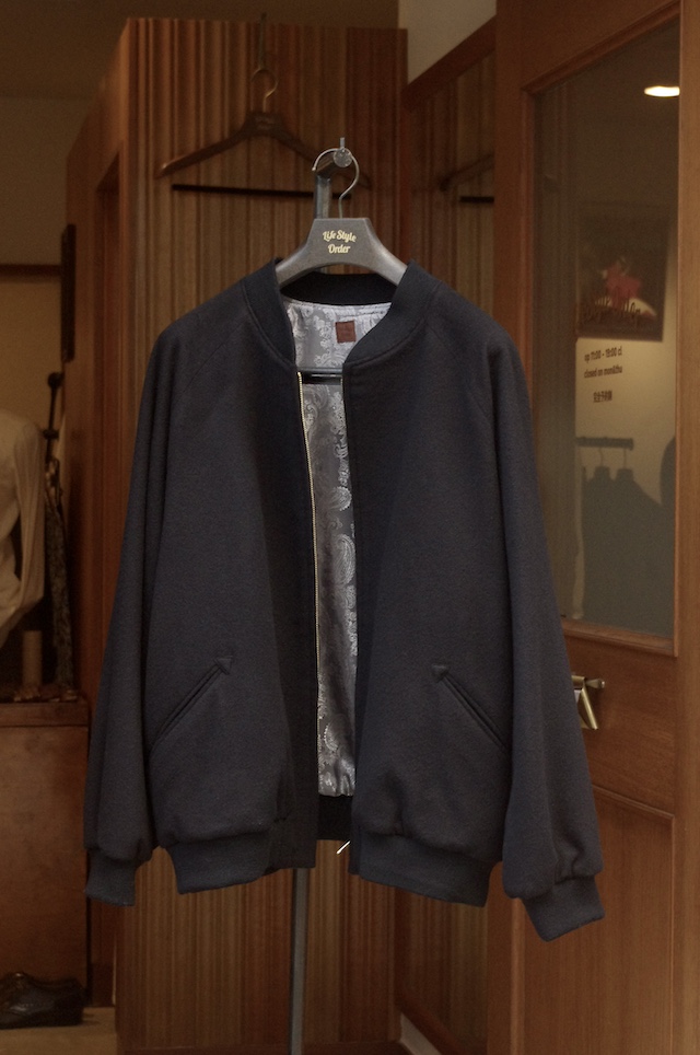 と言うことで、本日は黒のカシミヤ生地を使用したジップアップブルゾンと、グレーのフランネル素材を使用したドローコード仕様のワイドパンツをご紹介いたしました。