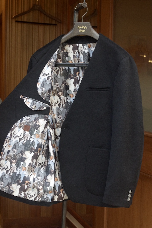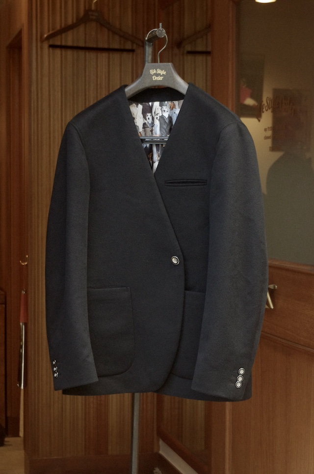 ライフスタイルオーダー定番の襟なしノーカラージャケットをオーダー頂きました。