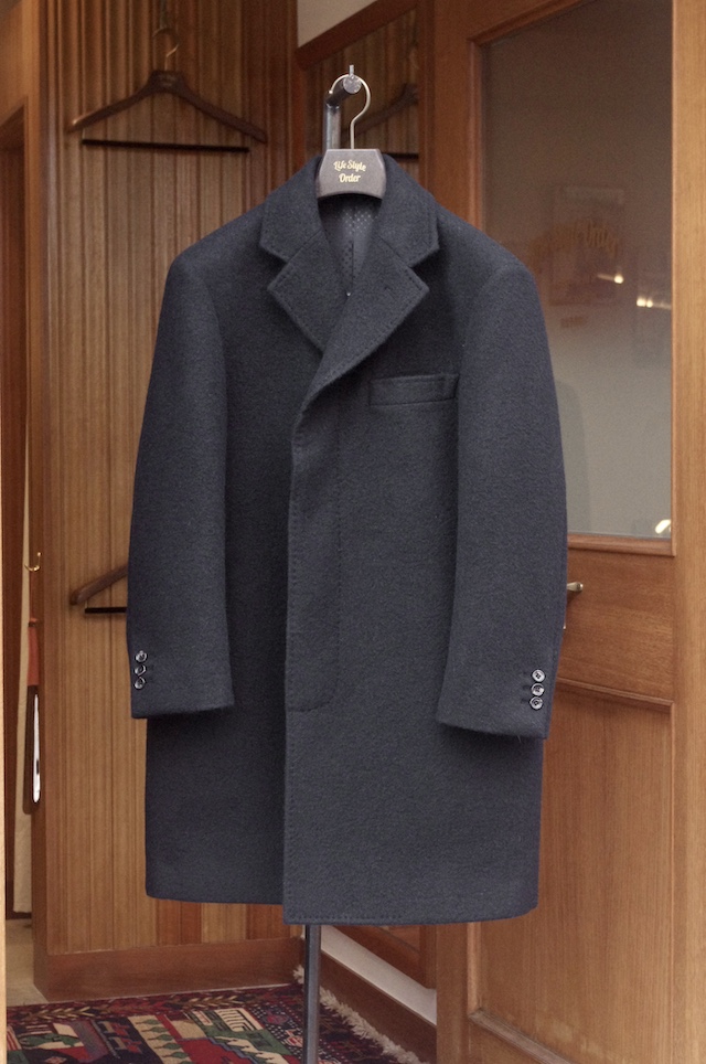 本日はアンゴラを使用した黒のコート生地でオーダー頂いた、メンズのチェスターコートをご紹介です。