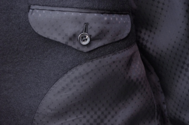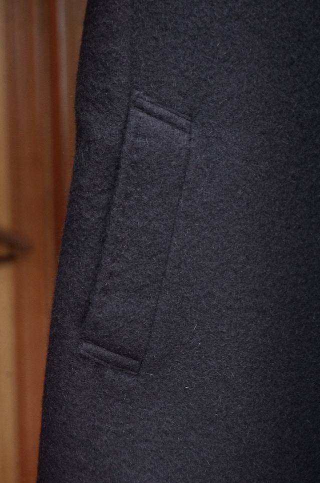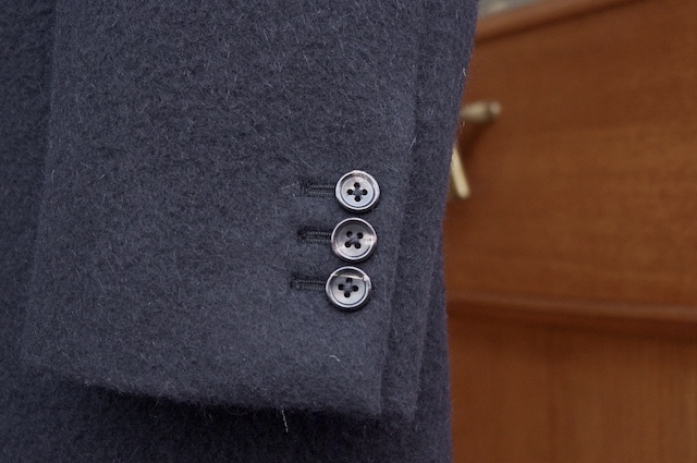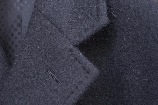 今回オーダー頂いたコートはアンゴラ65%ウール35%の黒を使用した、チェスターフィールドコートです。