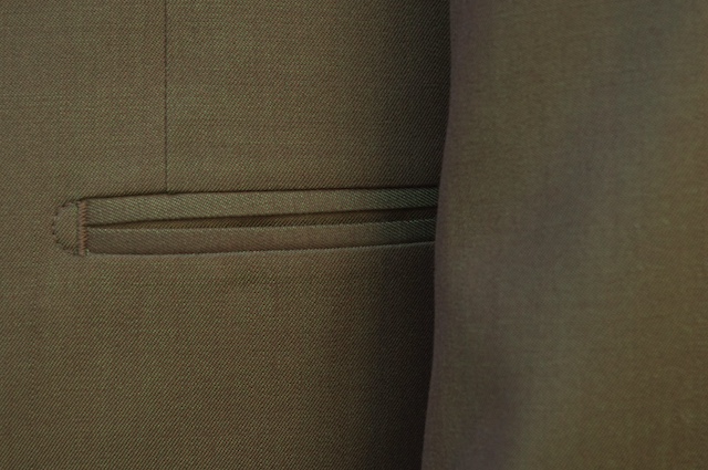 腰ポケットもフォーマル向けに両玉縁ポケットを採用。
