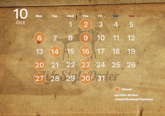 当店はイレギュラーなケースを除き基本的には祝日を除く、毎週月曜日と木曜日が定休日となります。