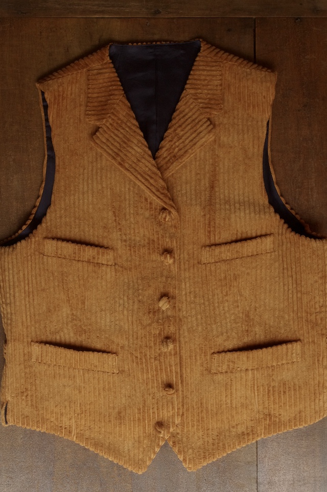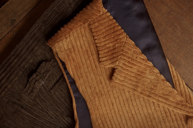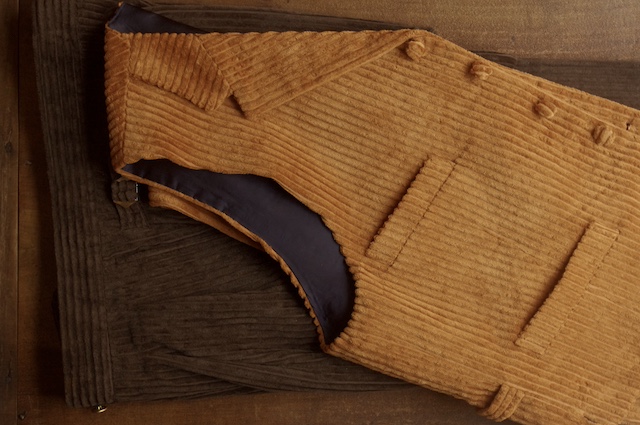 昔から太畝が私は好きですが、今回は超太畝コーデュロイ生地をベストとパンツで採用。