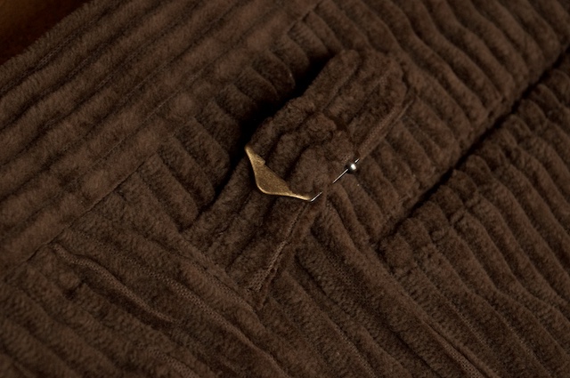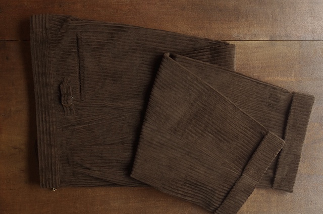 最後は色違いの太畝のコーデュロイでブラウンの生地を使用したワイドパンツ。