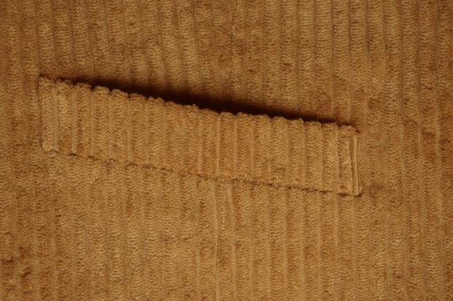 梳毛のスリーピーススーツの時は玉縁ポケットを標準的に使用していますが、今回は箱ポケットを採用。