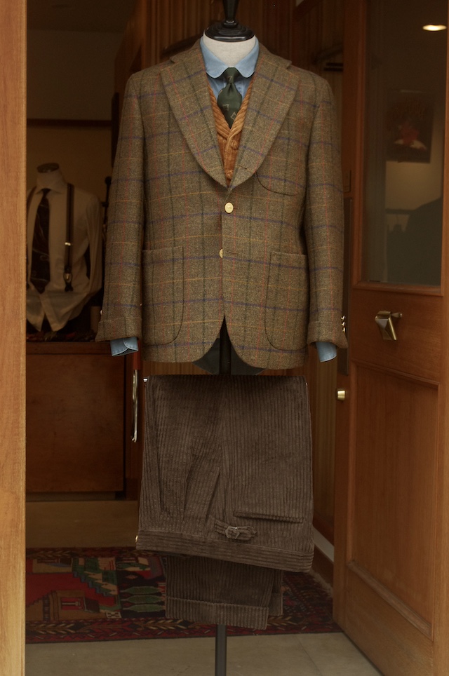 改めてツイードジャケット、コーデュロイベスト、コーデュロイパンツをスタイリングした写真です。