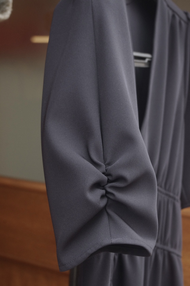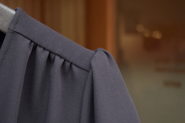 解体すれば一番話が早いのですが、解体せず複製していますので生地厚が結構変わったことでギャザー分量の調整など特に袖周りが難しい一着となりました。