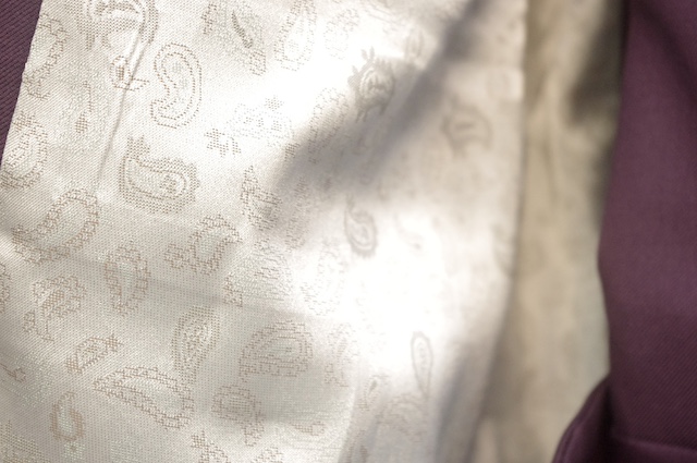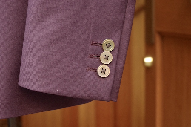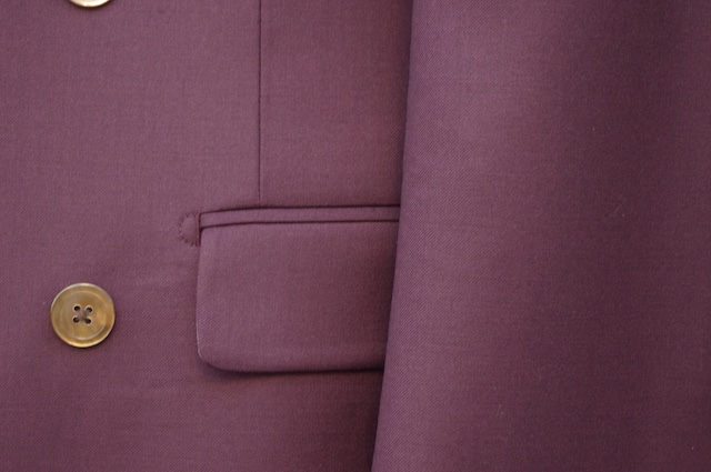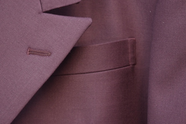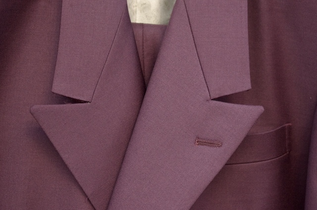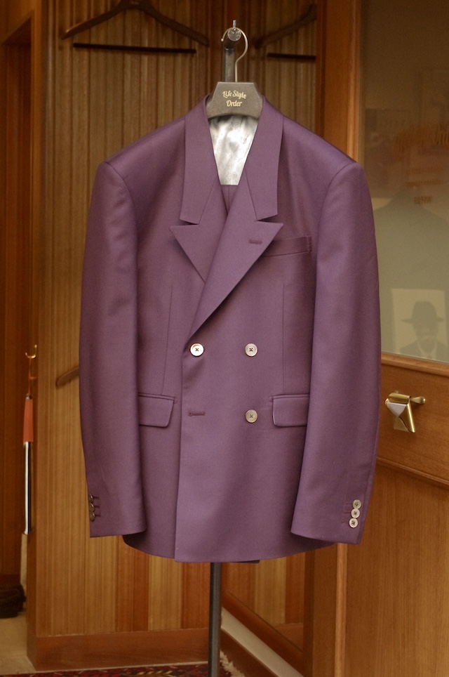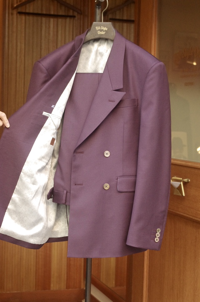 本日はレトロな紫系の生地でオーダー頂いたダブルのスーツをご紹介です。