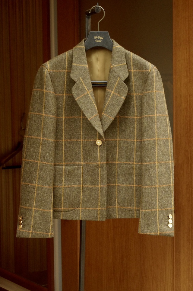 今回オーダー頂いたのは以前もご紹介したLOVAT(ラバット)の、ツイード生地コレクションからオーダー頂いたショート丈のレディースジャケットです。